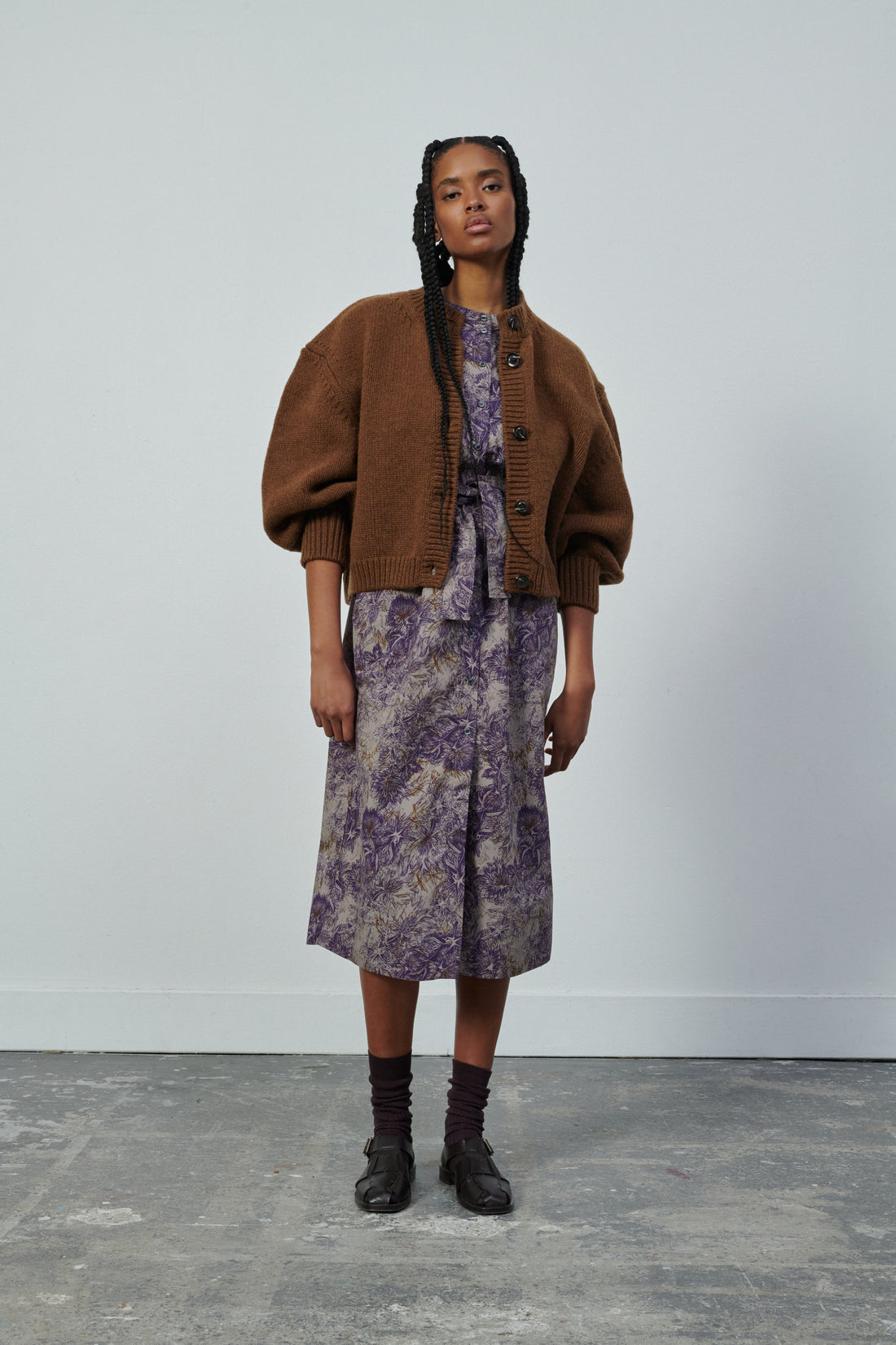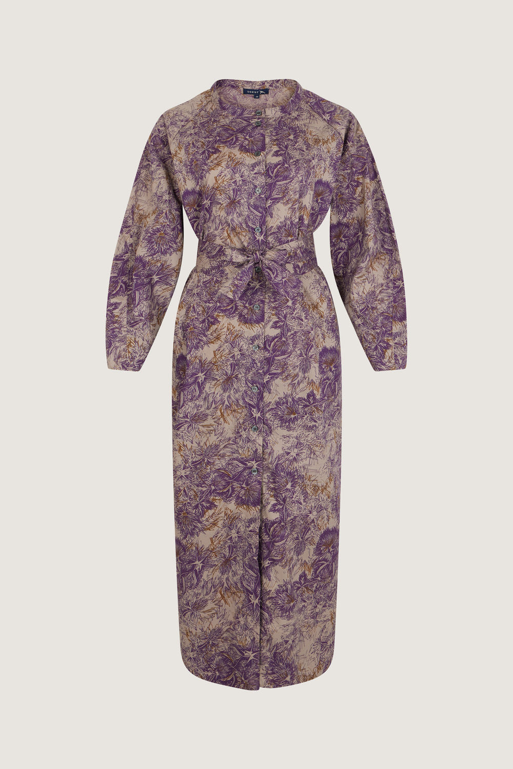 Printed cotton poplin dress chestnut/purple